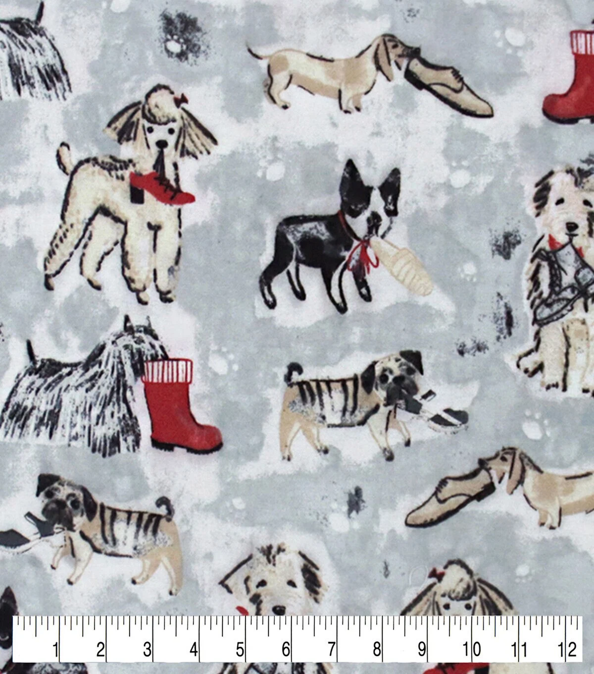 Dog Sketch Gray Super Snuggle Flannel Fabric