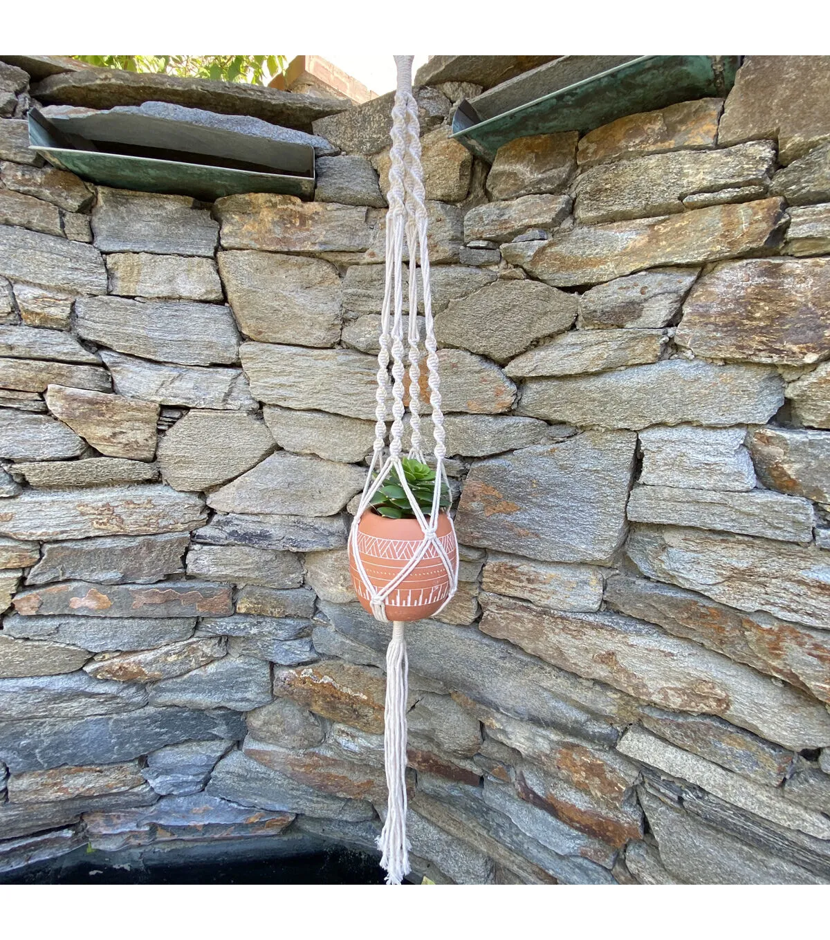 Hang with me! Hang this 41�� Hanging Macrame Ceramic Aztec Pot anywhere in your home to create a floating oasis. Handcrafted by Artisans, our macrame hanger with a ceramic pot will help elevate your plant game in modern style. Made of ceramic and rope and painted orange, this 41��x6��x5�� hanger with a pot will add a bit of chic nature to your living space. Buy a few at a time, so you can start your own floating garden indoors! Handcrafted by ArtisansMeasurement: 41��x6��x5��Color: OrangeMaterial: Ceramic, Rope **No Drainage Hole. Indoor Use Only!**