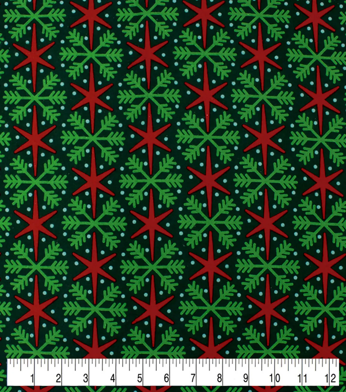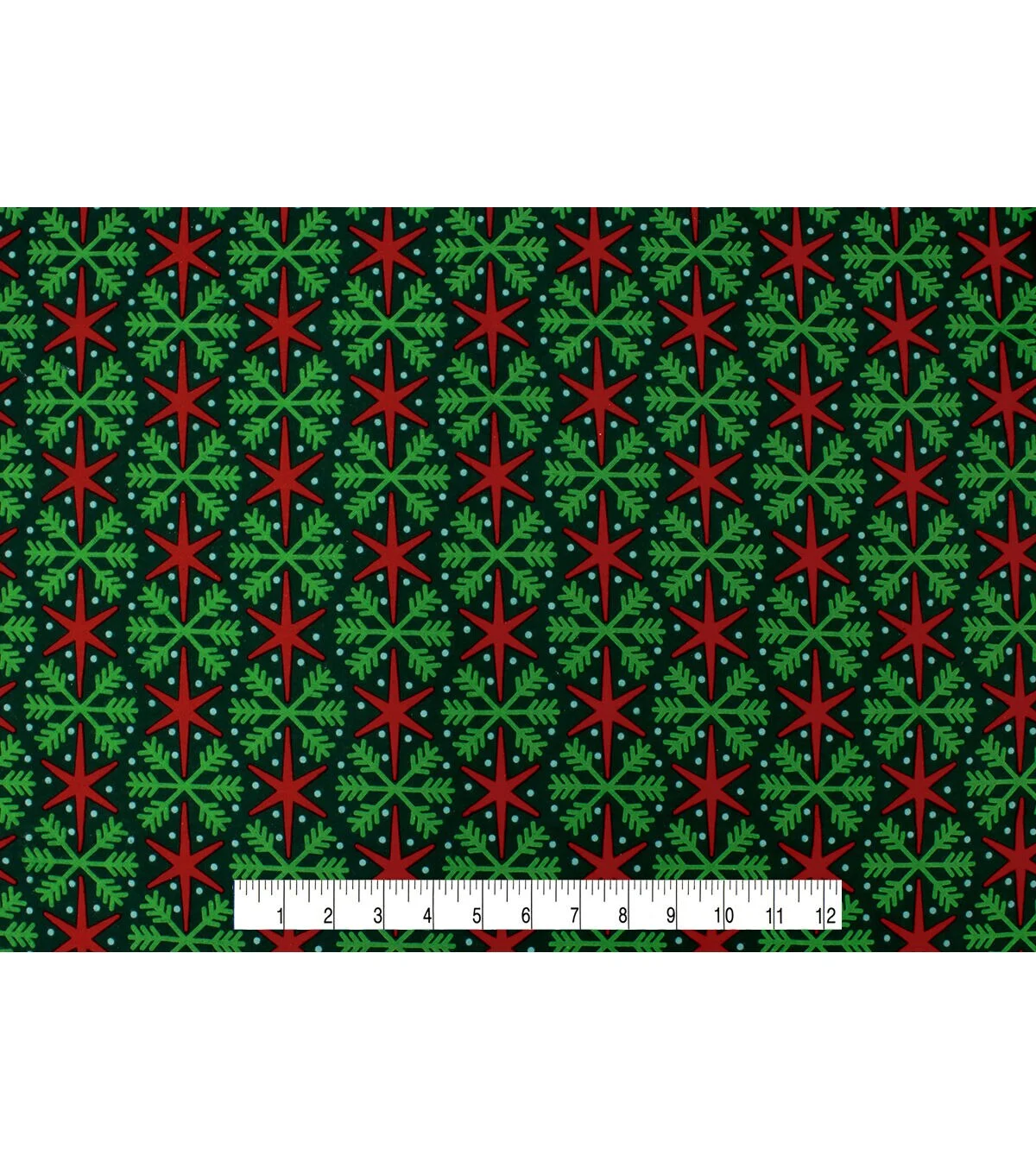 Green Snowflakes on Red Super Snuggle Christmas Flannel Fabric