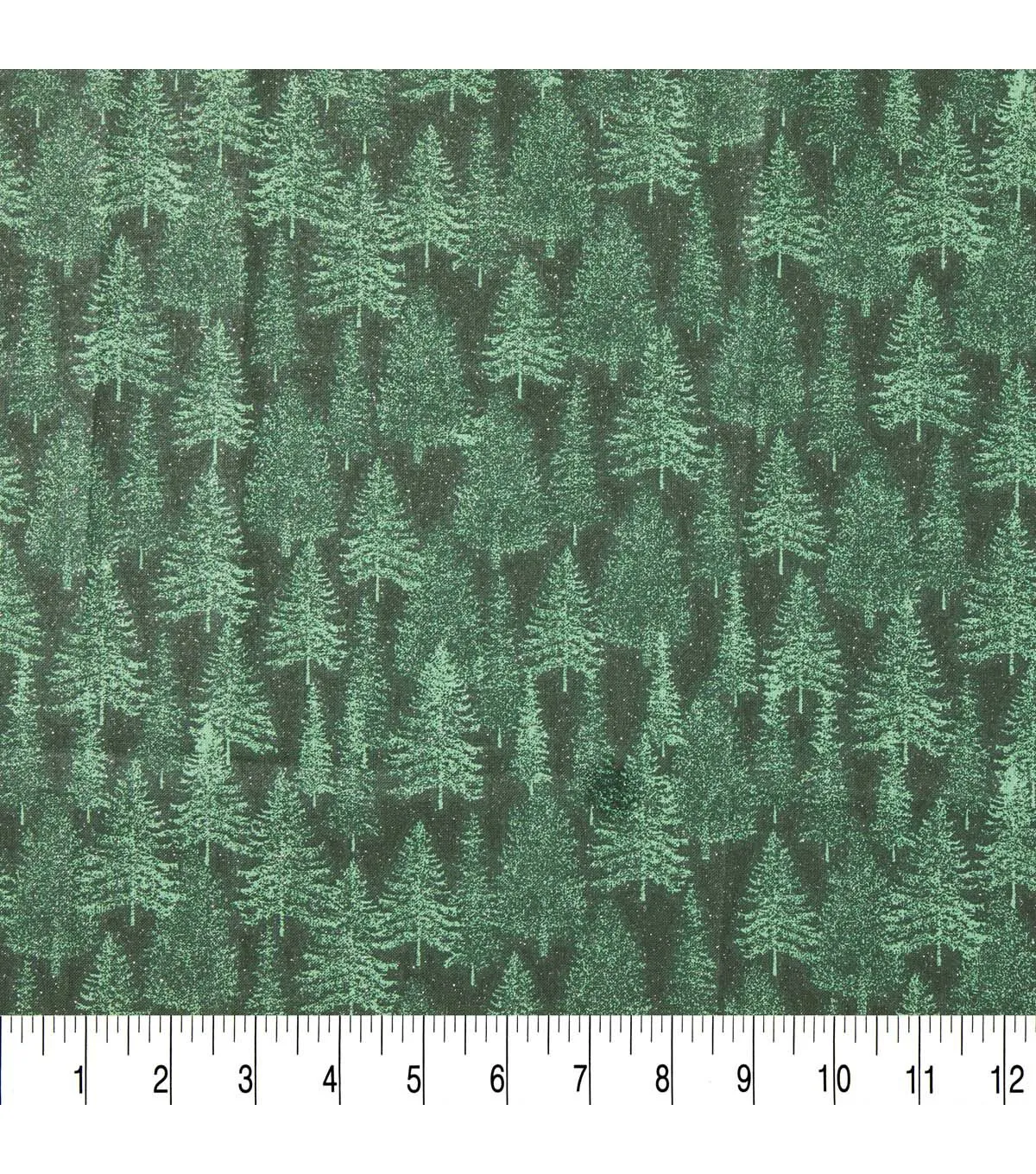 Get in the Holiday Spirit with Green Trees Christmas Glitter Cotton Fabric