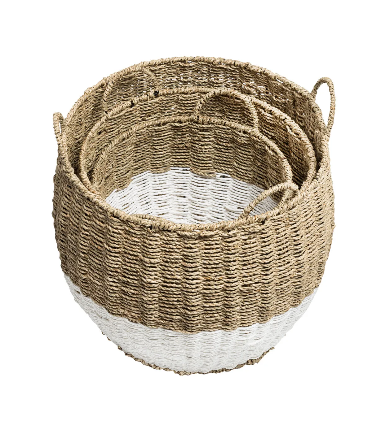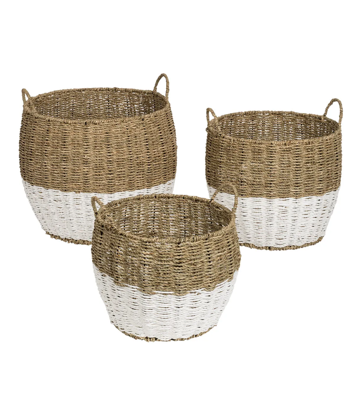 Keep your space, whichever space it is, tidy with these three different-size storage baskets that can hold anything from throw blankets to towels to books. These nesting storage baskets are stackable when not in use for easy storage, and handles make transporting items from room to room simple. In addition to their undisputed functionality, the two-colored seagrass design brings a unique design element to your surroundings.