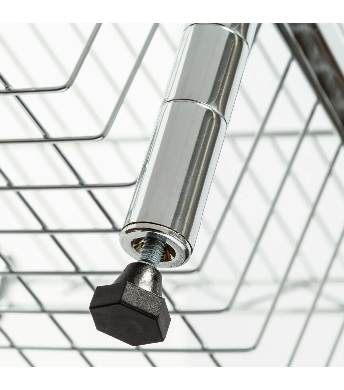 A flexible storage solution that adjusts in height to accommodate tall or shorter items in most cabinets. Also good for pantry organization, the contemporary design and brilliant chrome finish present a polished look when you open your cabinets. Handy and sizable, the wire basket pulls out for easy access to anything from food items to under-the-sink cleaning supplies. This shelf works best in cabinets that are 18 inches wide or larger.