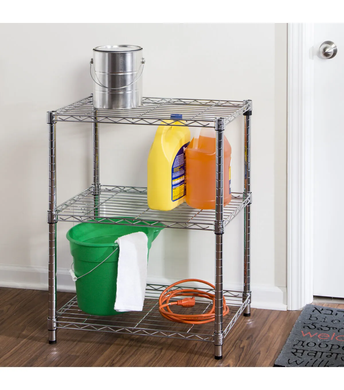 This 3-Tier Heavy Duty Steel Shelving Unit is a storage shelving solution that is a functional masterpiece. Stack up to 250 pounds of weight on each steel shelf, and adjust individual shelf height to suit your storage needs. And while it may be the best garage shelving unit you ever discovered, it's also perfect to store kitchen accessories or in the pantry to hold food and snacks. Equally important, no tools are required for assembly.