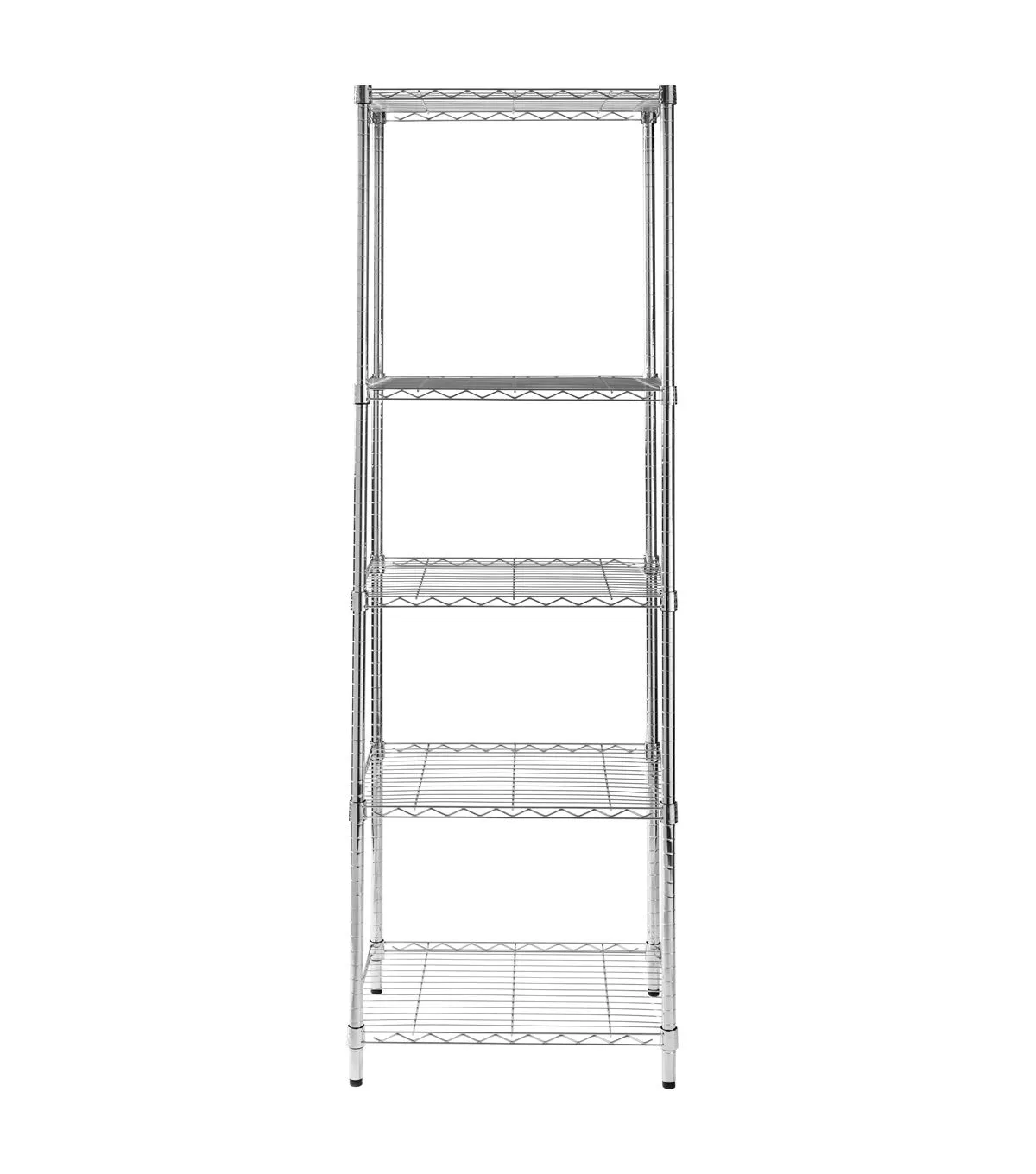 You are looking for a shelving unit that is versatile – that could serve as garage shelving or kitchen shelves. You need adjustable shelves for when your storage needs change or that oh-so-random item comes home and doesn’t fit on the shelves as-is. Well, your shelving ideas are just a click away. This 5-Tier Adjustable Chrome Storage Shelf is all that and more, with the ability to hold up to 250 pounds on each shelf and a steel frame construction that gives it industrial quality, making it the perfect kitchen, garage or closet shelving unit. And if you want to move it around, you can purchase wheels that will give you the portability you need, with the functionality and style you desire.