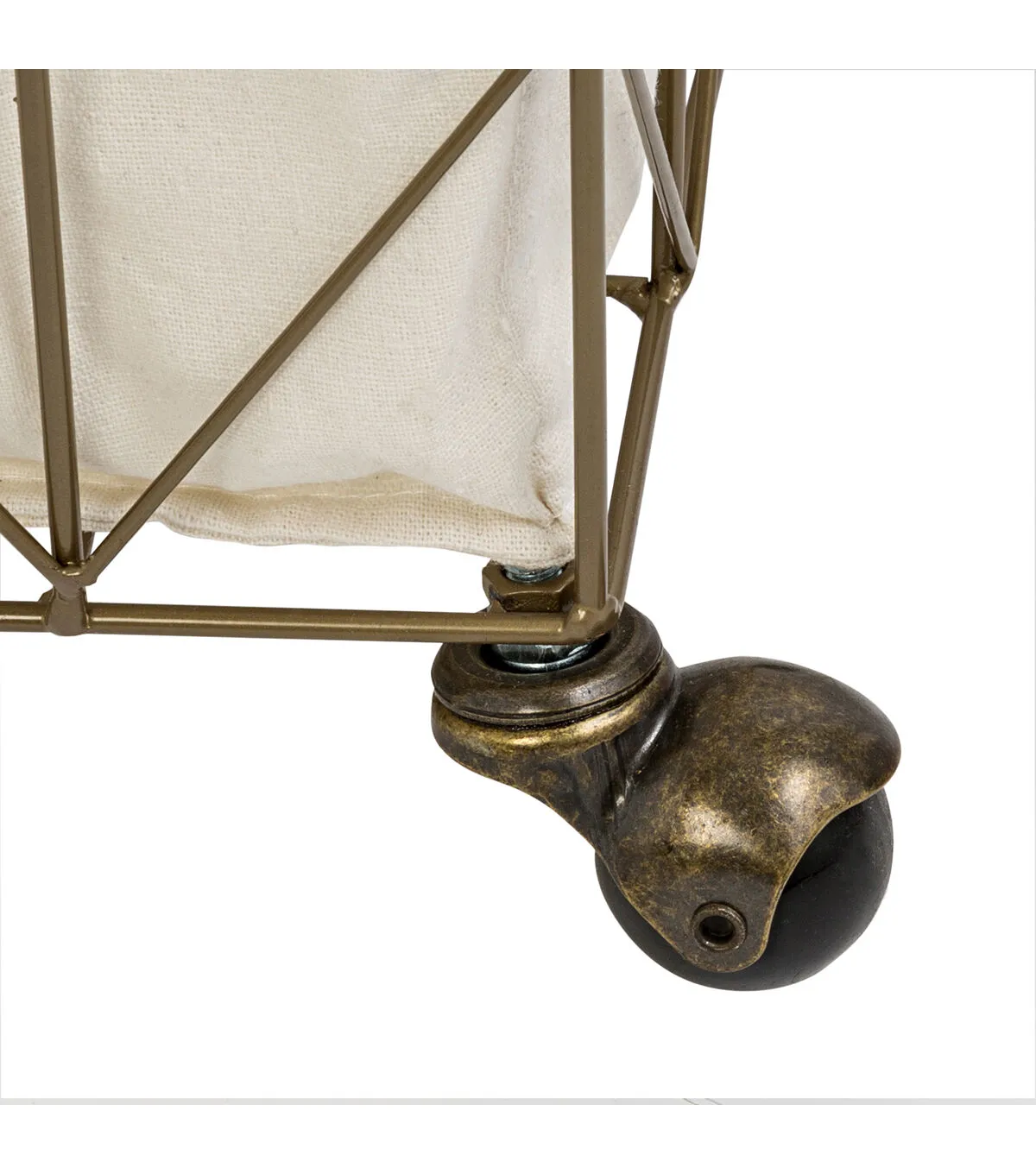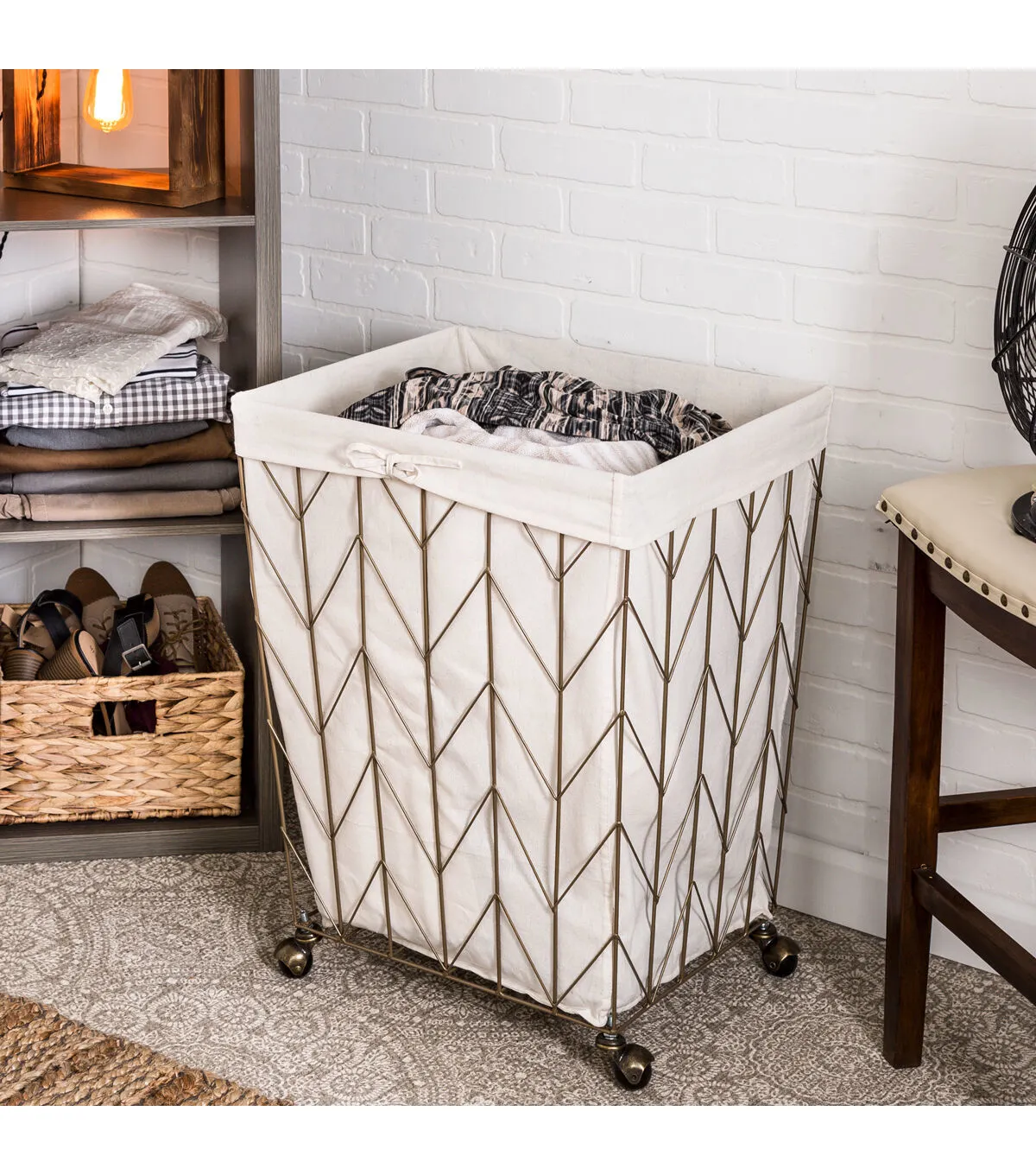 This hamper is what happens when you don't have to sacrifice form for function. The mid-modern chevron design on this bronze wire laundry hamper contrasts nicely with the natural cotton canvas liner. That liner can be removed easily and is machine washable, so it will always look fresh. And those wheels swivel 360 degrees so you can easily transport it from bedroom to laundry room. Check out the rest of our Coastal Collection decor for a cool and coordinated look.