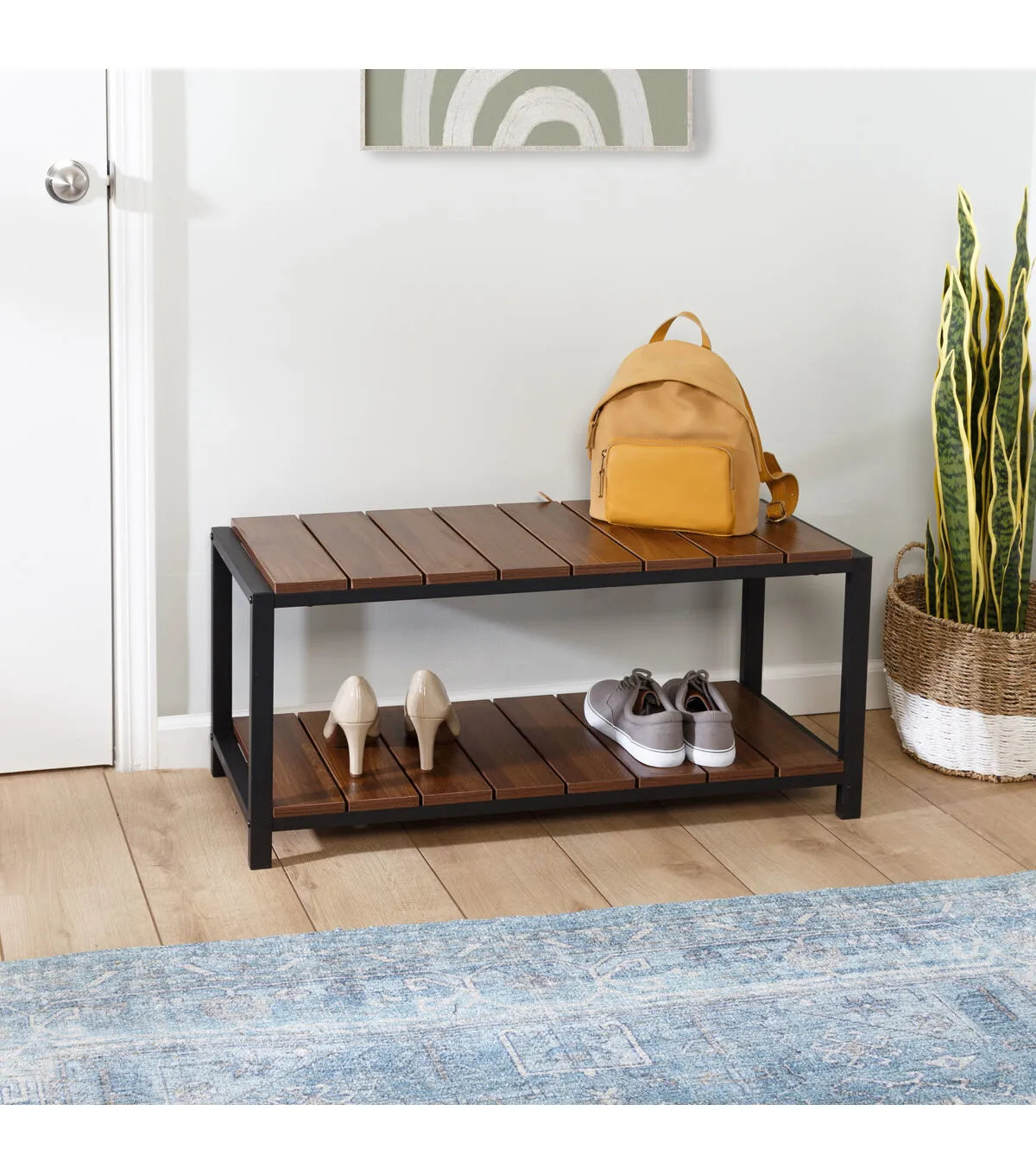 Whether you’re coming or going, shoes tend to congregate near entryways. Enter the 2-tier walnut shoe bench, with its timeless style and much-needed functionality. Store shoes on both shelves or use the bottom shelf for shoe storage and the top for all that handbag or your favorite accessory that you need handy when you’re running out the door. And it holds enough weight for you sit on the top bench while putting your shoes on or taking them off after a long day.