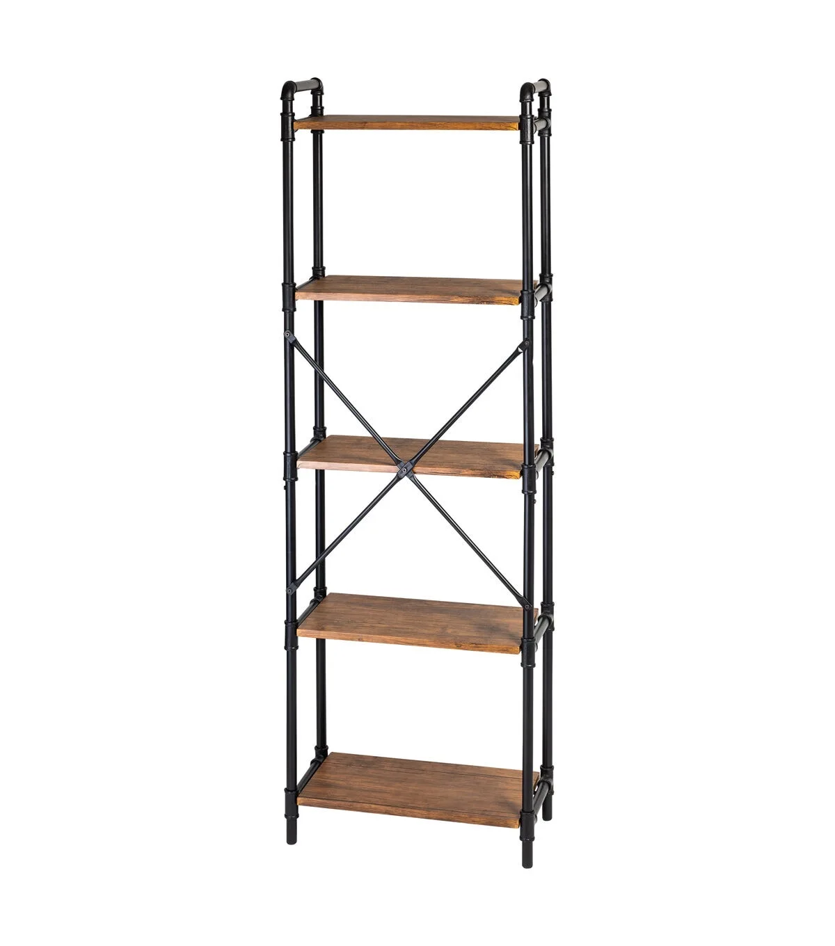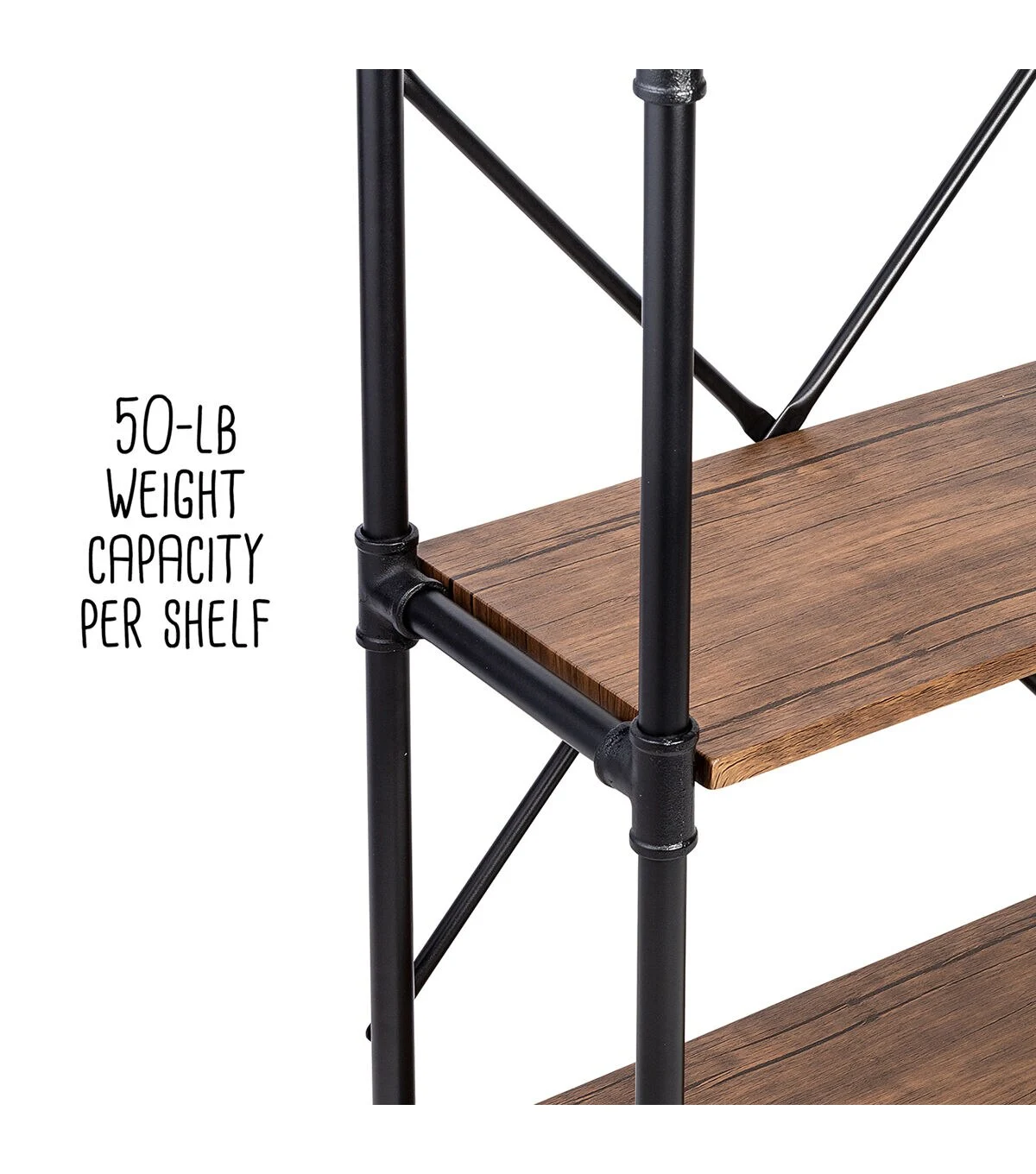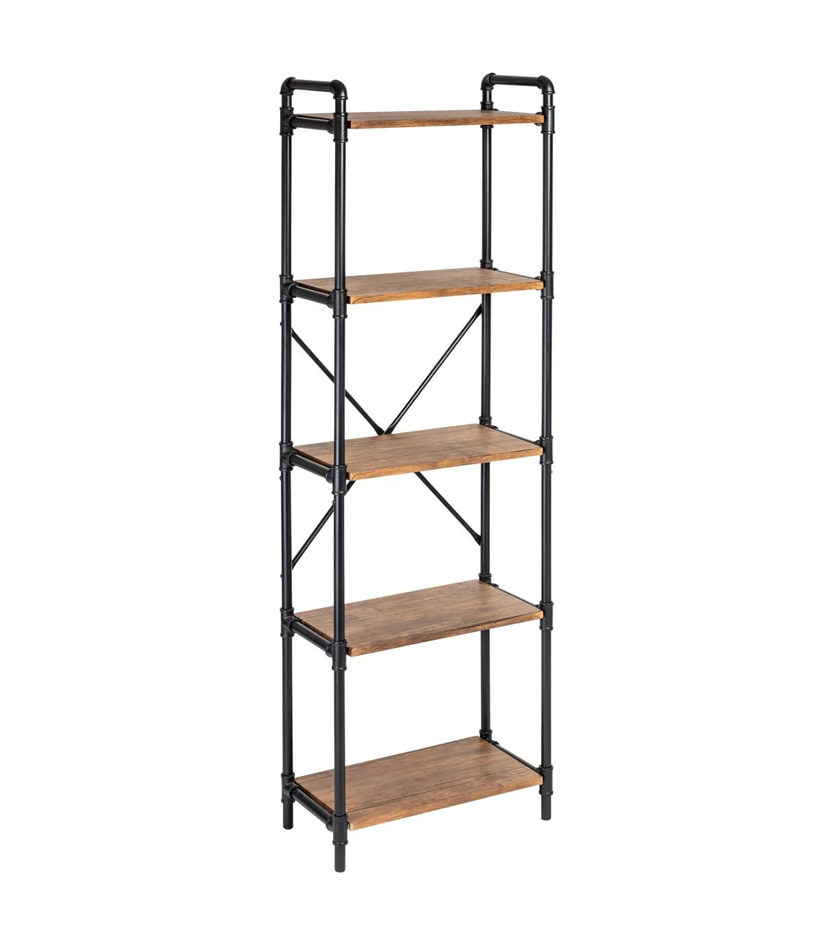 No matter the room, this black bookshelf brings not only function, but loads of design cache. With a weight capacity of 50-lbs per shelf, it can stand up to your kitchen, living room or bathroom needs, and with its sleek black piping frame and rich brown shelves, it’ll leave you oooh’ing and ahh’ing every time you walk in the room.