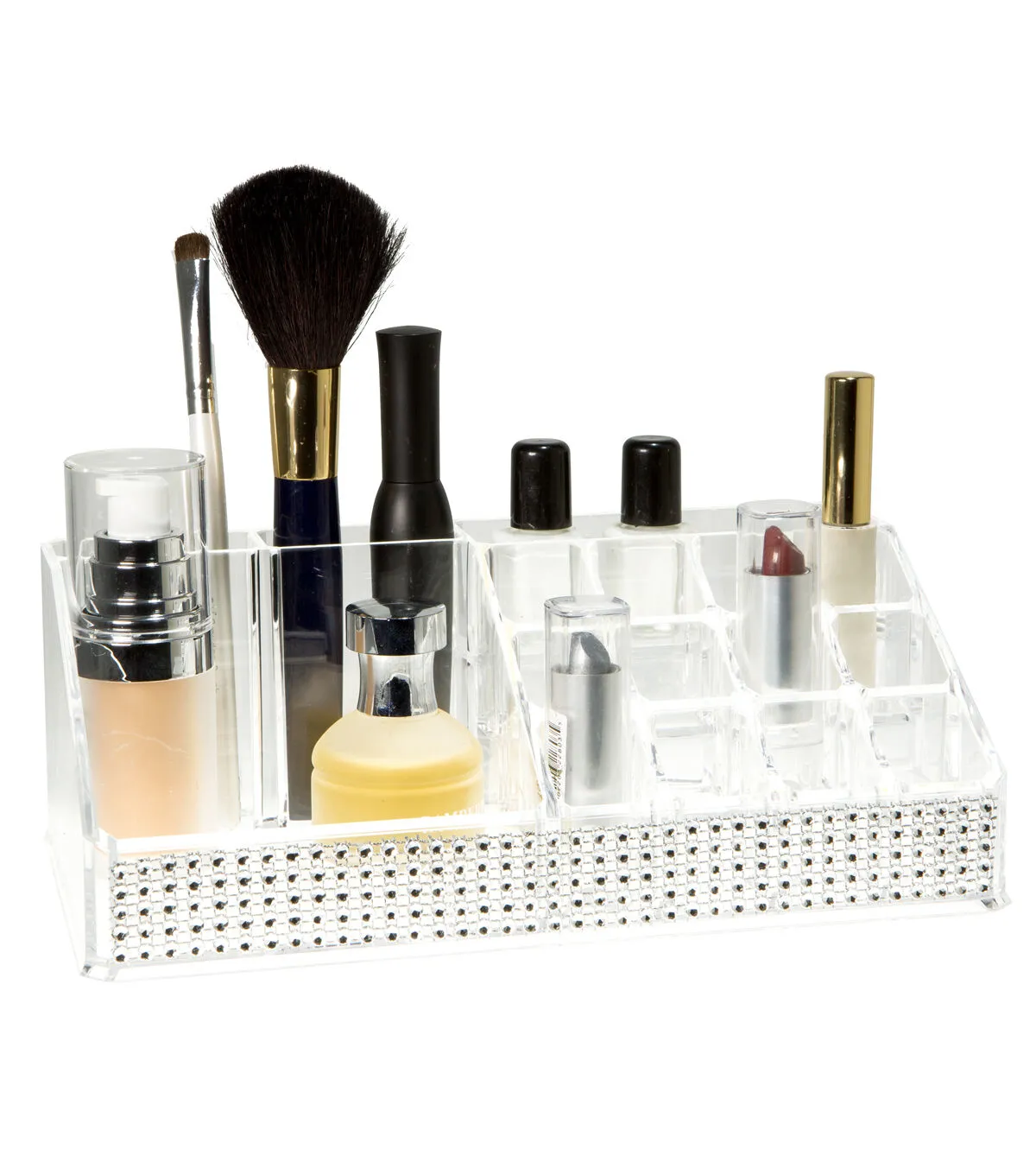 Keep all of your finishing touches in one place with this Laura Ashley 16-Section Cosmetic Holder. This accessory is ideal for a bathroom, vanity or dresser. It will help you get ready quickly when you're on the go. You can keep makeup, rings, earrings and more easily within reach and organized. This holder is transparent for your convenience.
