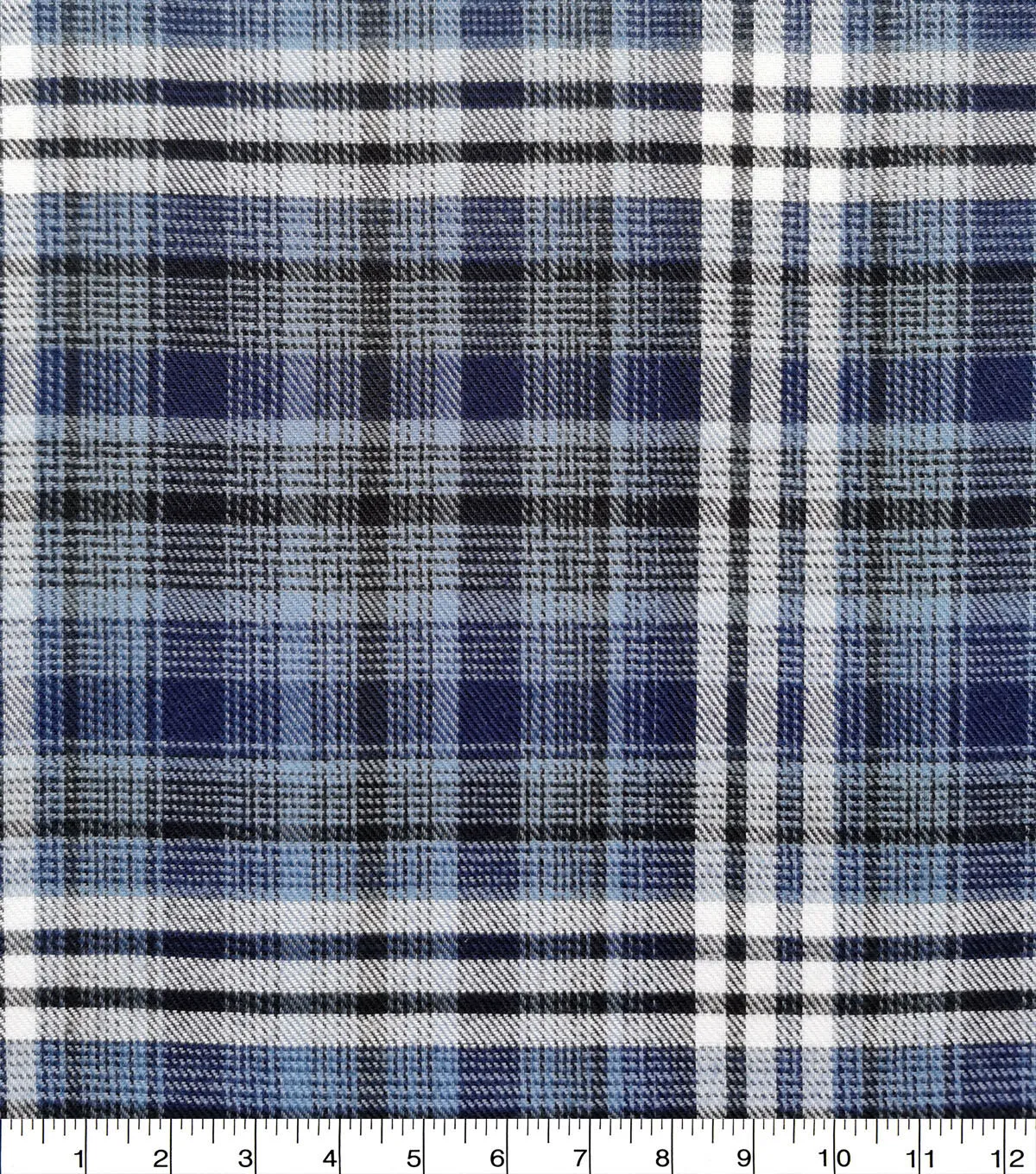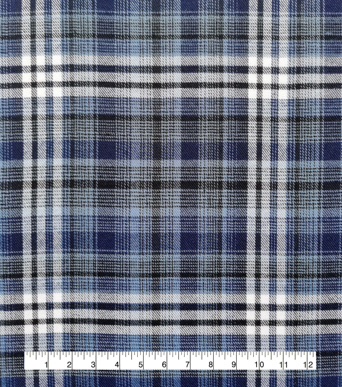 Navy Box Brushed Plaid Polyester Flannel Fabric