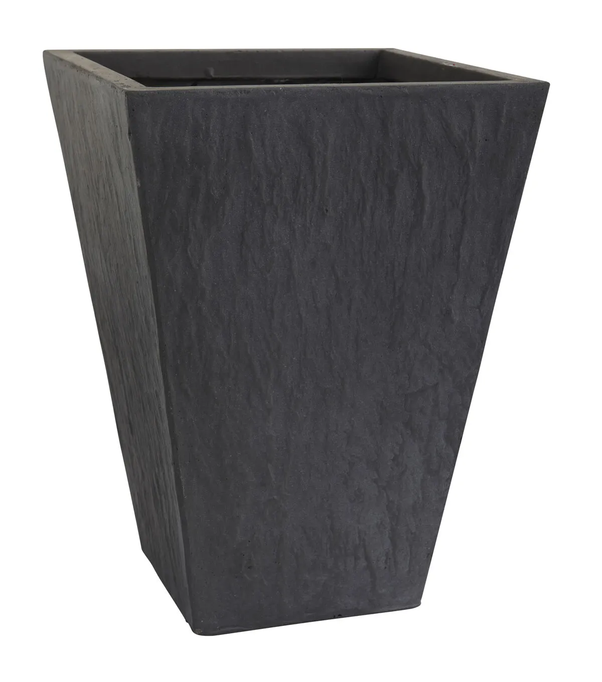 The carefully tapered design of this slate planter makes it suitable for a professional setting, like an office, or a minimal, modern home. Gray in color, the planter can blend in well with any background, providing support to whatever plant is housed with in. Good for indoor or outdoor use.