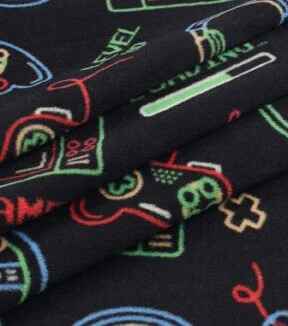 Neon Gaming Accessories on Black Anti Pill Fleece Fabric