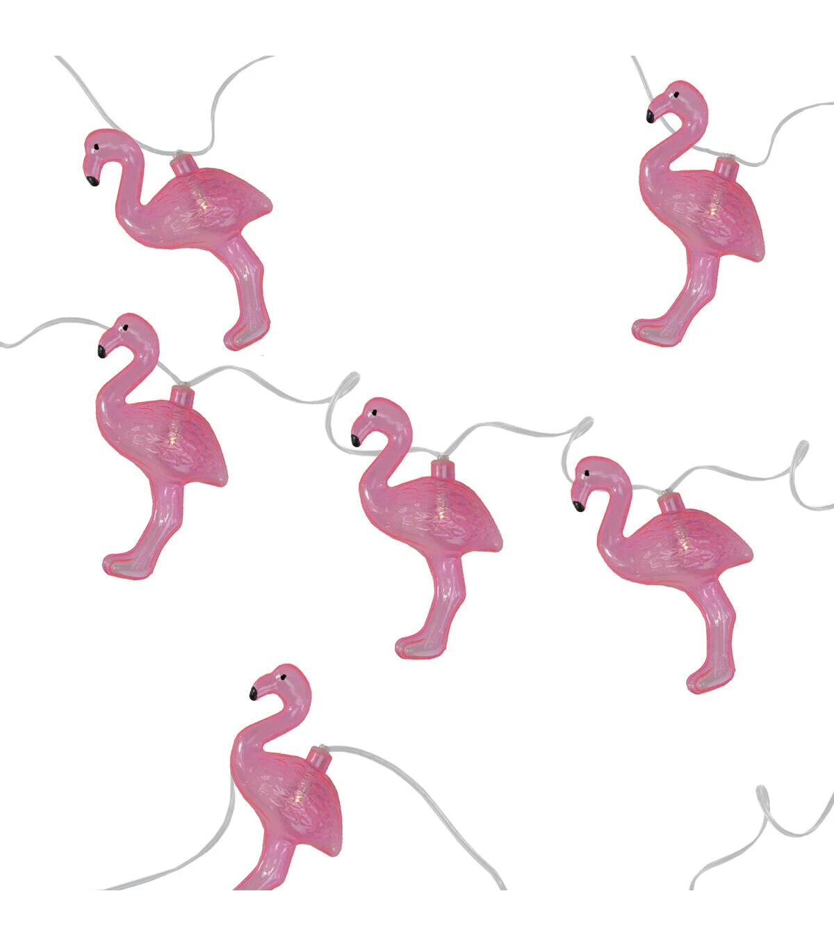 Set the mood for your next summer get-together with this strand of pink flamingo lights. Their easy glow and colorful covers are sure to bring a unique sparkle to your decorations. These cool lights would be a great addition to a summer party or themed birthday! Product Features: Color: warm white bulbs / clear wire "Warm white" also known as "warm clear" has a soft natural incandescent glow similar to candlelight Pink flamingo shaped light covers Number of bulbs on string: 10 Bulb size: concave wide angle Spacing between each bulb: 6" Lighted length: 4.5' Total length: 5.5' 12" lead cord Additional Product Features: LED lights use 90% less energy Durable non-glass replaceable bulbs Cool to the touch Recommended for indoor use only Non-replaceable bulbs Requires (2) "AA" size batteries - not included Convenient on/off switch on battery pack