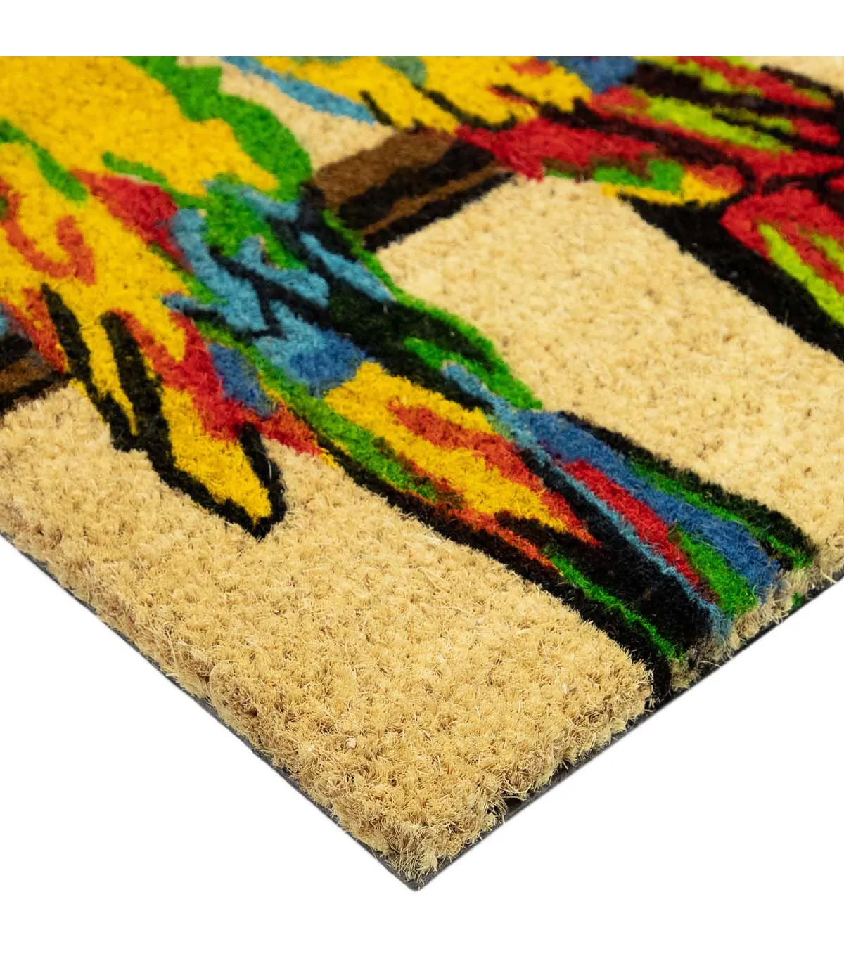 Add a burst of color and whimsy to your doorstep with this multicolor Parrots outdoor doormat. This vibrant doormat features a playful design of multicolor parrots perched on a branch against a toffee-colored background. Made of durable coir material it effectively traps dirt and moisture from shoes keeping your entryway clean and tidy. Perfect for both indoor and outdoor use this doormat is a charming way to welcome guests to your home.