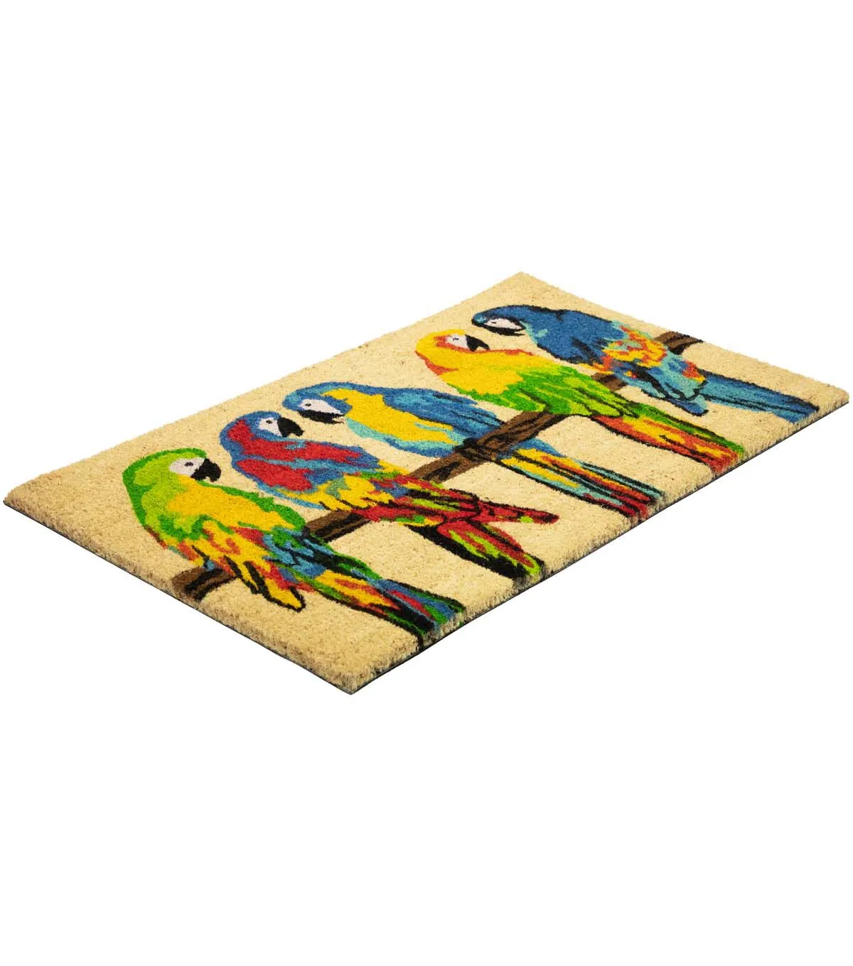 Toffee and Multicolor Parrots Coir Outdoor Doormat 18" x 30"