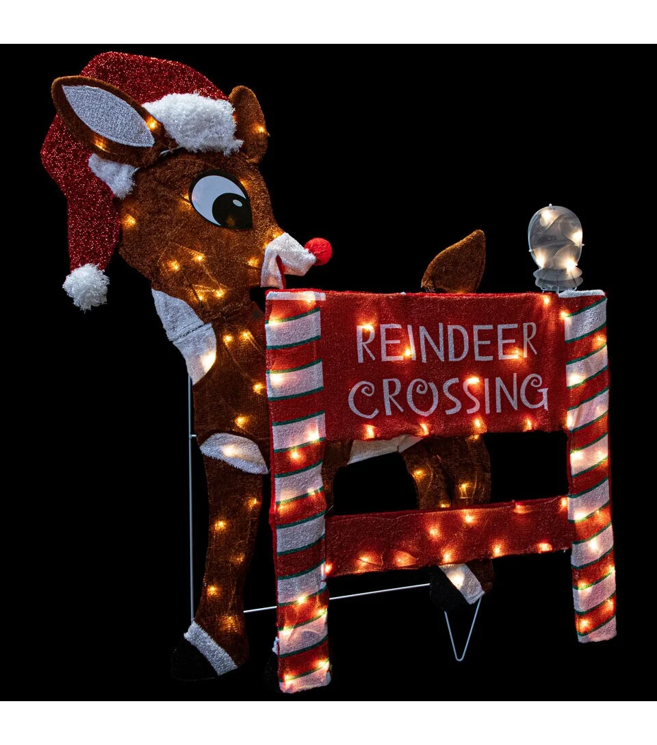 Everyone loves Rudolph! A classic uplifting story of an underdog rising to fame makes this decoration a must have. Rudolph stands near a Reindeer Crossing sign waiting for the rest of his reindeer friends. With durable construction and easy installation this display will take center stage season after season.