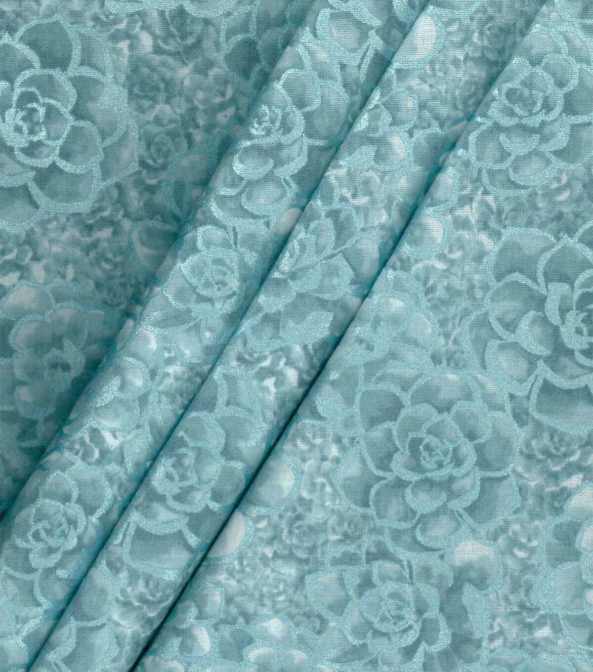 Pearlescent Teal Succulent Quilt Cotton Fabric by Keepsake Calico