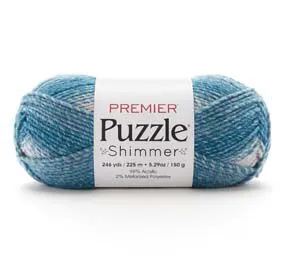 The newest addition to the Puzzle family, Puzzle Shimmer has the color you love with a subtle shimmer, a yarn in spectacular colors. Each ball is crafted with 4 coordinating colors that combine to create ever-changing, softly blended stripes plied. Weight Category: 5. Content: 98% Acrylic, 2% Metalized Polyester. Put up: 5.29oz/150g, 246yds/225m. Gauge: 15sx20r=4in/10cm on size US Size 10 (6 mm) knitting needles. Suggested crochet hook size: US Size J-10 (6 mm). Dyelotted: we try but are not always able to match dyelots. Available in a variety of colors. Each sold separately. Machine Wash Cold, Do Not Bleach, Do Not Tumble Dry, Do Not Iron, Dry Clean with Solvents. Imported.