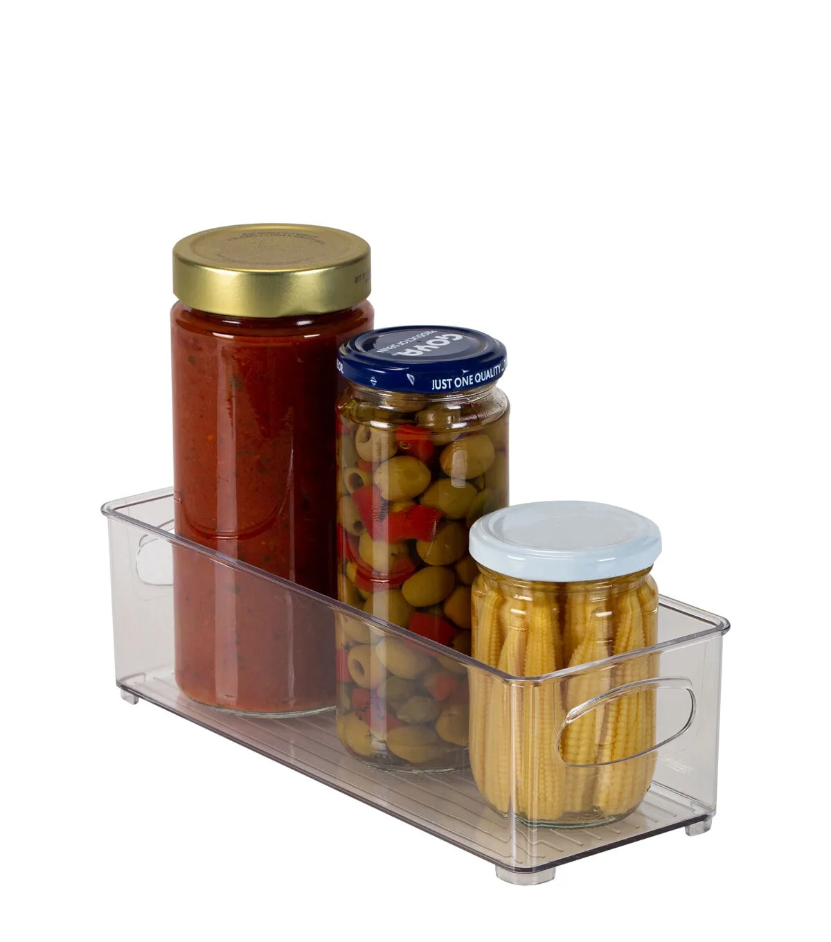 The Simplify Small Narrow Vertical Organizer is the best kitchen storage and organization solution. This bin is perfect for cabinet and refrigerator organization. The size is small and narrow to fit into tighter spaces. You can store canned foods in it without worrying about them falling over when you open your cabinet or drawer. Or you can store fruits, vegetables, and yogurts. in your fridge. The handle cut outs make it easy to lift and slide the bin. The clear design makes items inside visible and easy to find. You can also keep it in your office to store office supplies. The perfect storage solution for any room.