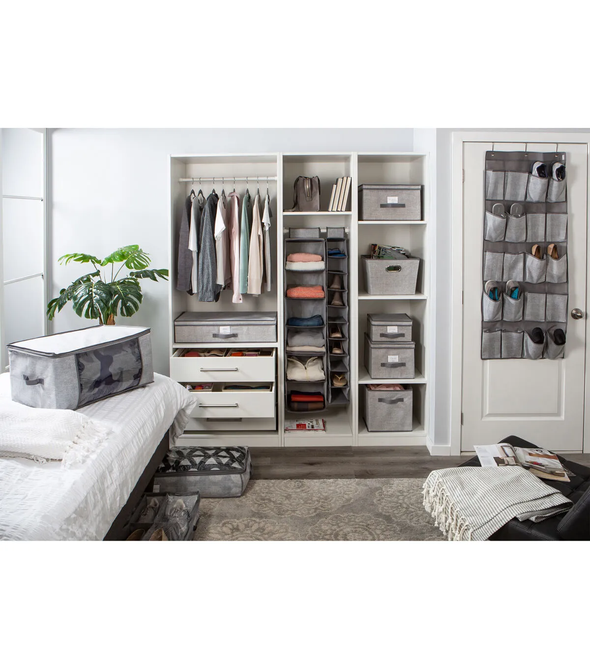 Simplify's Collapsible Storage Cube is made of breathable non woven and paper board material that prevents dust and damage, while easily sorting and storing off season items and accessories. Sturdy handle makes it easy to carry the storage cube around the house. Holds a multitude of items to help de clutter your living areas. Open top allows for easy access of all of the belongings in the cube. Folds flat for storage when not in use.
