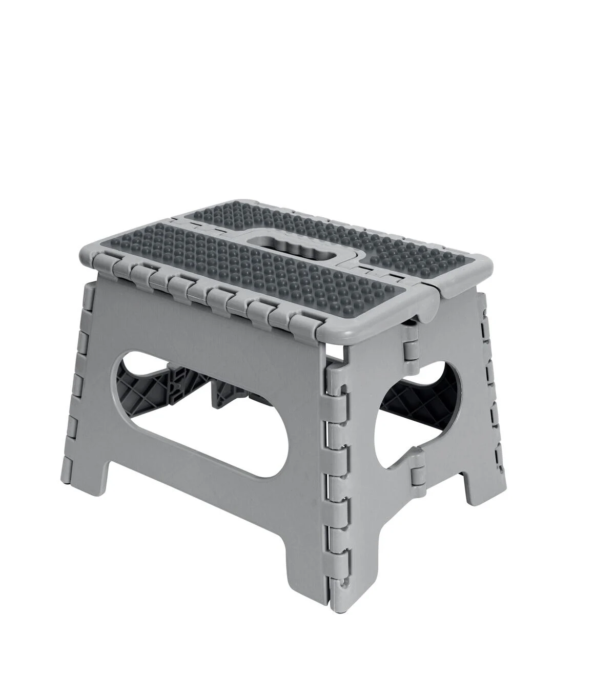 A must have in any home, dorm or office, the Simplify Folding Step Stool. With an easy carry handle you can conveniently transport the stool to any room in the household. With the 9 inch height and weight capacity up to 200lbs, this stool can hold children and adults. The anti-skid foot pads keeps this item safe to use. When not in use the stool easily folds away for storage.
