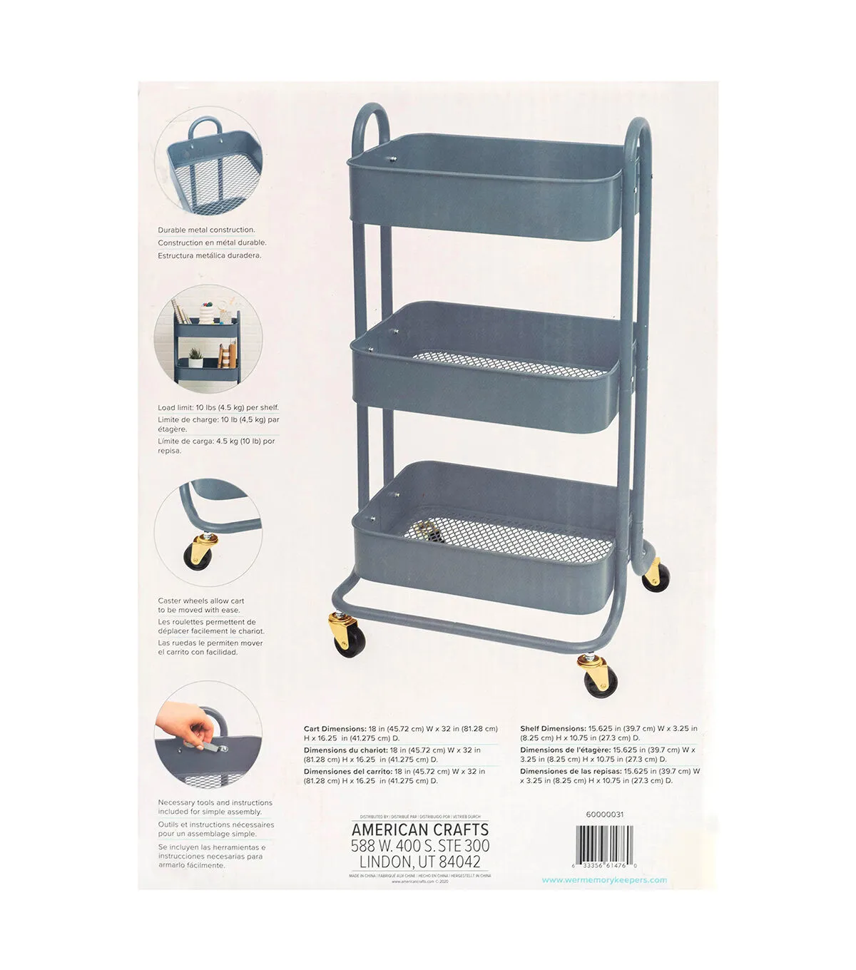The choice is yours with A La Cart by We R Memory Keepers! This sturdy crafting cart is the perfect addition to your creative space. It features multi-directional wheels for easy transportation and movement, three convenient storage and work shelves.