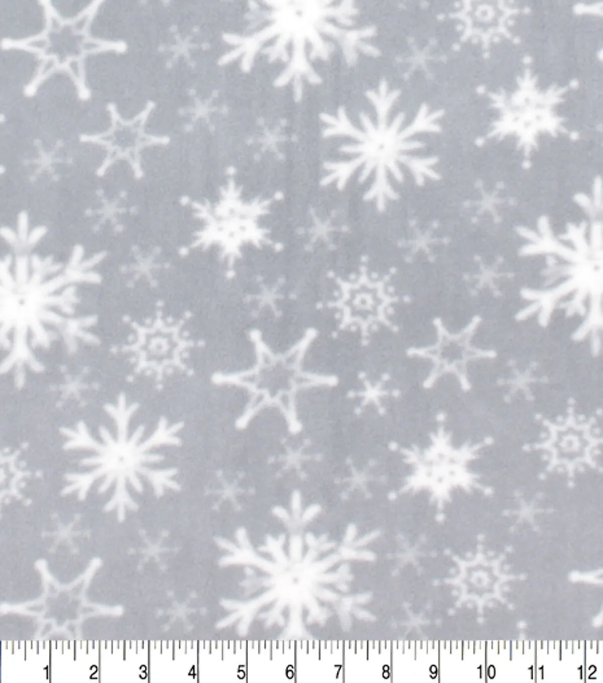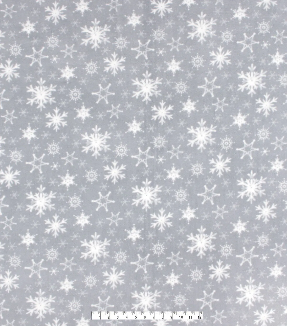 White Snowflakes on Gray Anti Pill Fleece Fabric