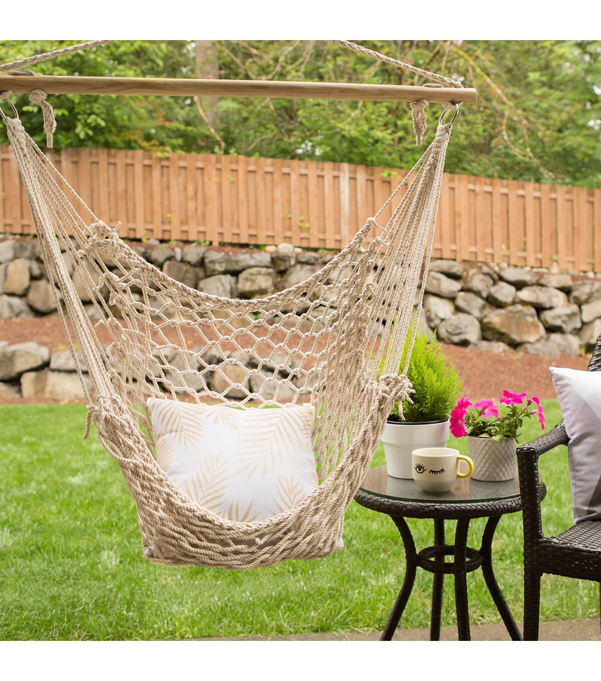 Perfect both indoors or out, this hammock is a great way to put your feet up and take it easy after a long day. Serves as patio, garden, porch, or bedroom seating, this piece will look amazing anywhere you put it!